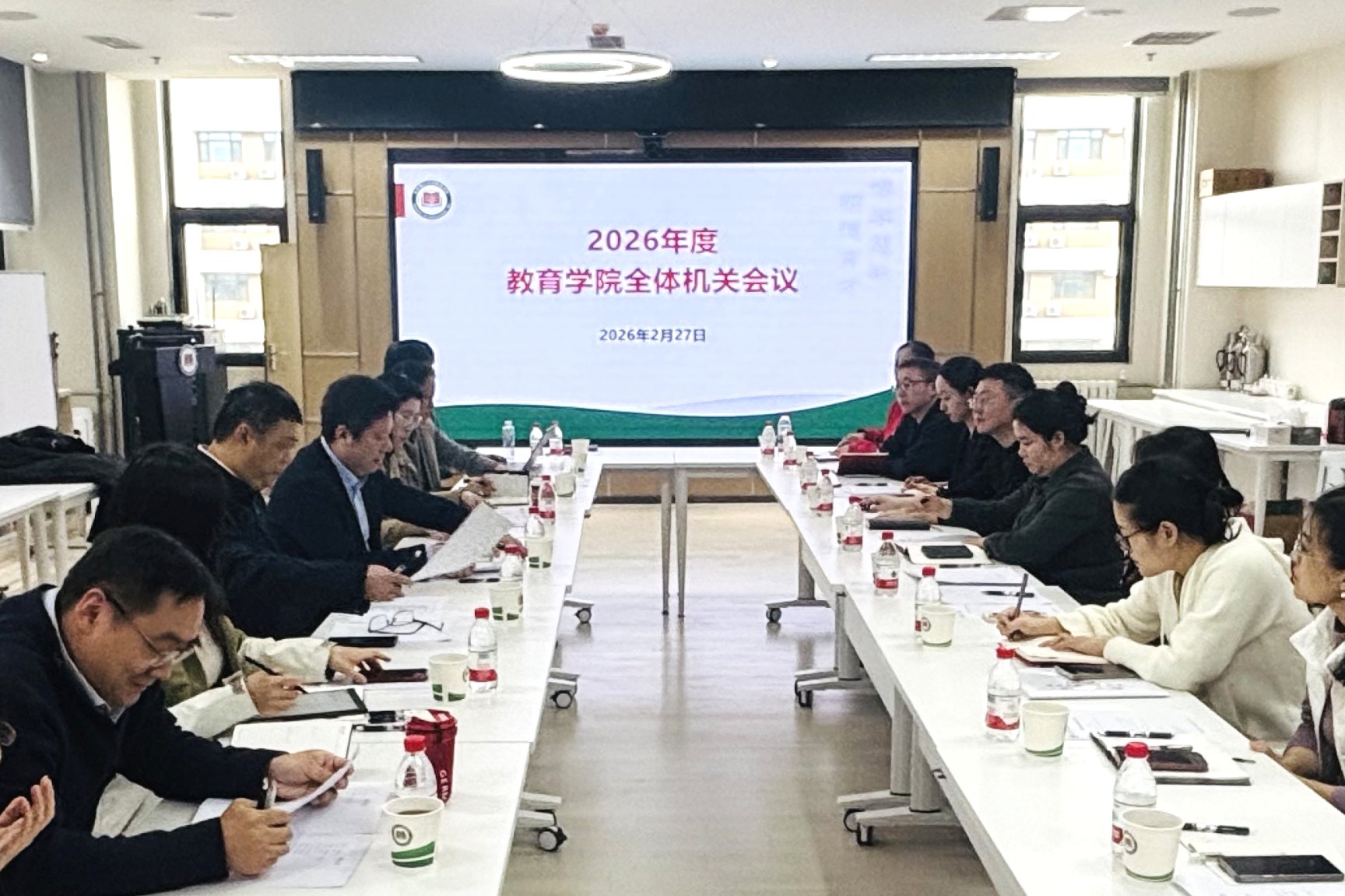 为贯彻落实学校第十六次党代会精神,牢固树立和践行正确政绩观,凝聚学院高质量发展合力,2月27日下午,教育学院全体机关会议在良乡校区文萃楼J712会议室顺利召开。全体领导班子成员、院长助理及机关人员参会,会议由党委书记李汉军主持,为学院2026年工作谋篇布局,为 “十五五”发展开好局、起好步奠定坚实基础。
